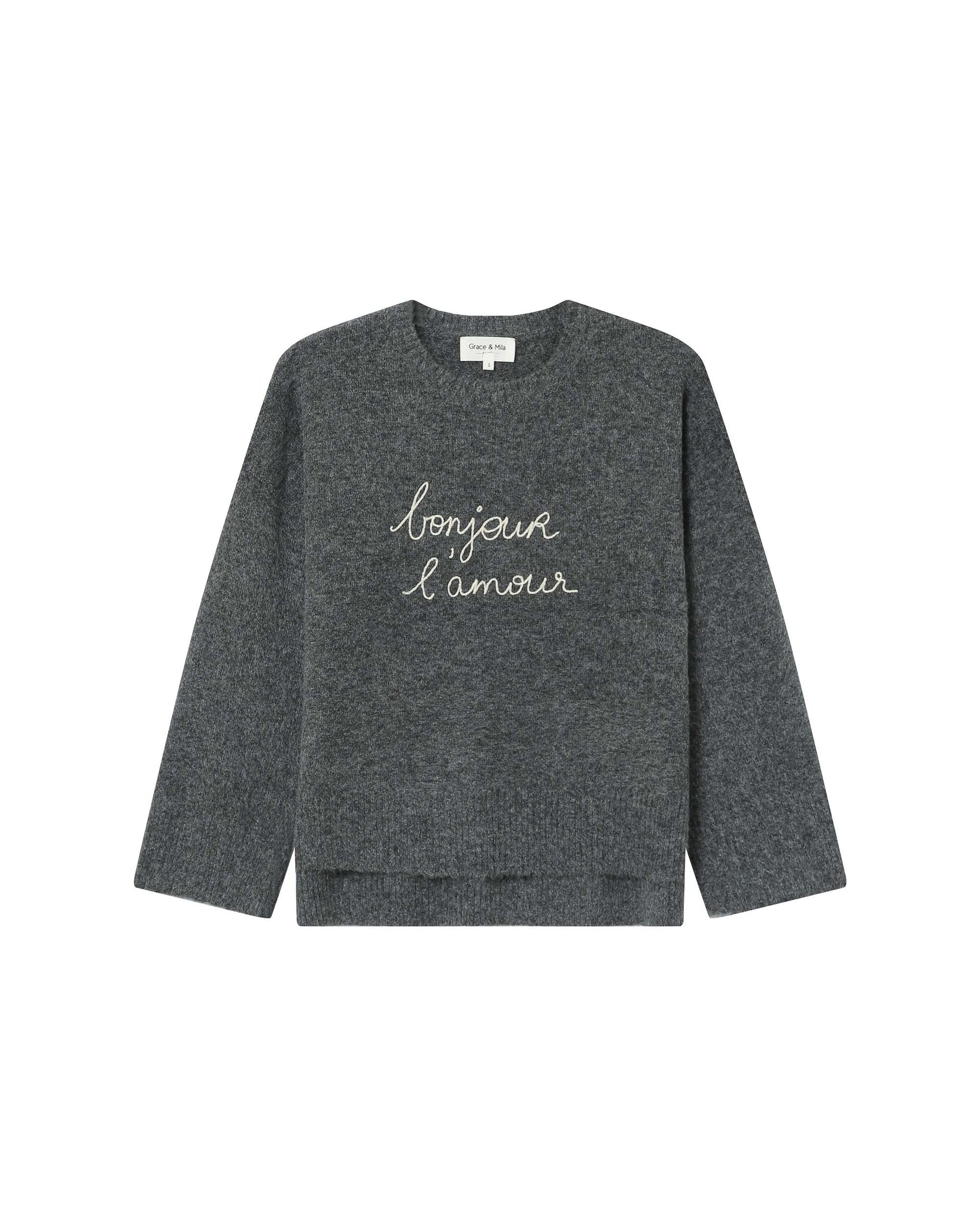 A stylish embroidered slogan knit adds a new dimension to your weekend wear. Layer back under cosy jackets with your favourite jeans for a great everyday casual style. With a relaxed oversized shape, round neck and deep side splits. 68% Acrylic 12% Polyester 11% Nylon, 6% Wool 3% Spandex.