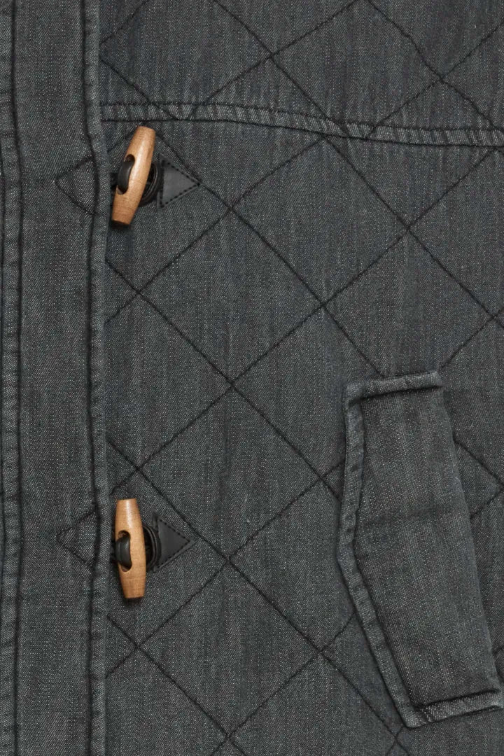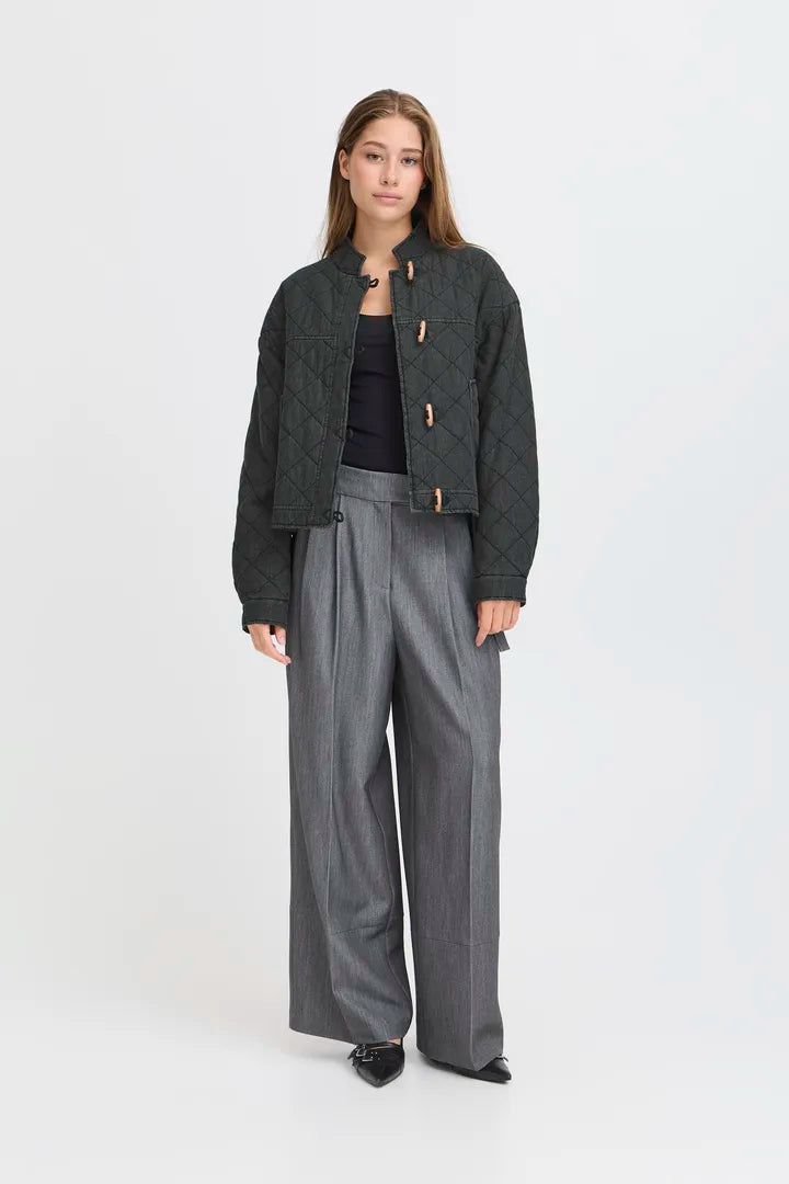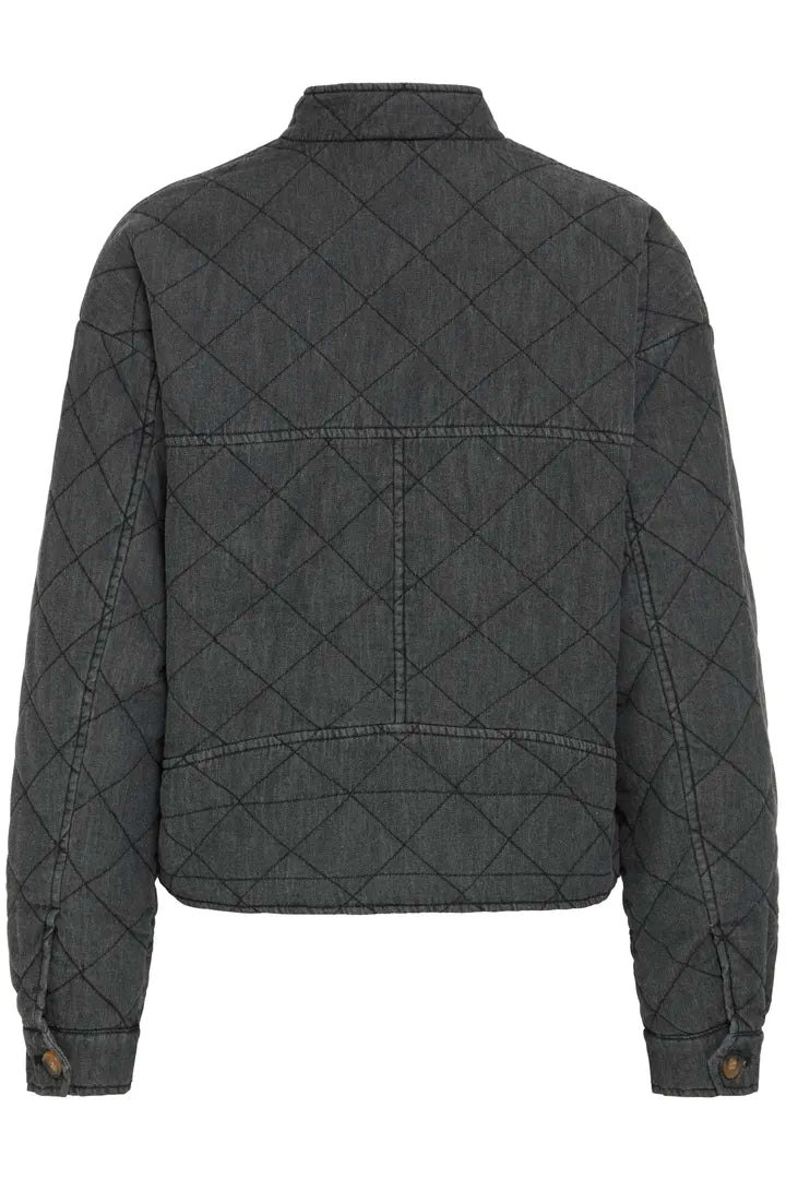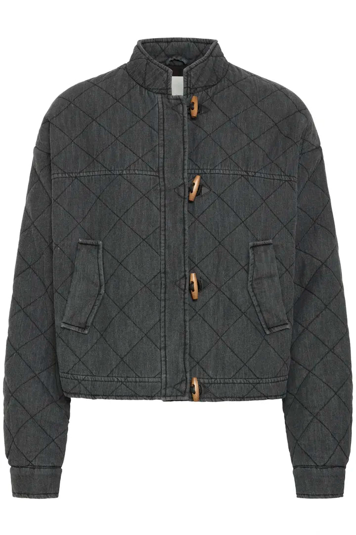 Quilted boxy casual jacket perfect for throwing on over Autumn outfits. With a relaxed fit, diamond quilting, high neckline, long sleeves, front pockets and distinct toggle closure. This short silhouette design offers comfortable wear and easy styling for various occasions. 100% Cotton.