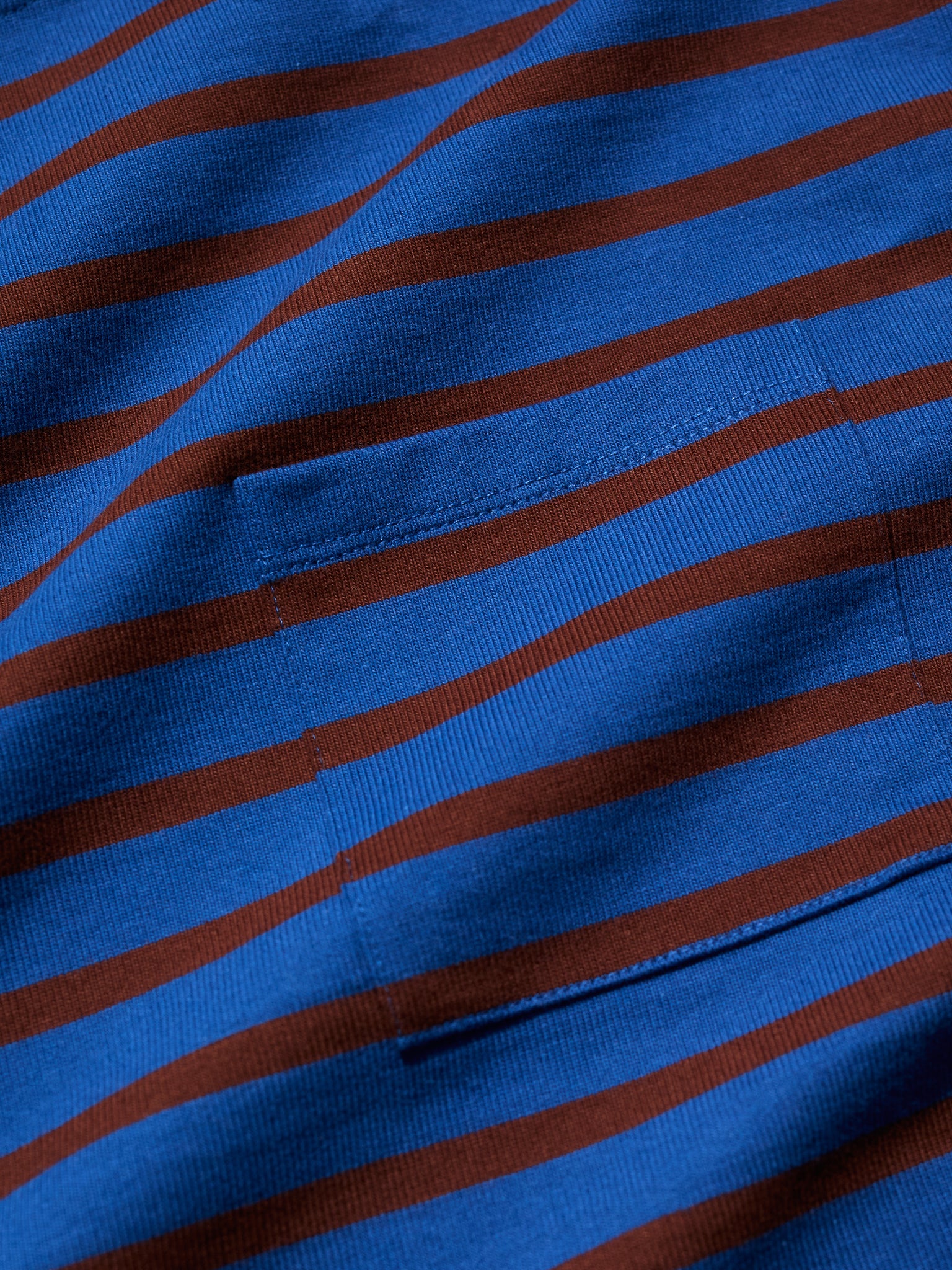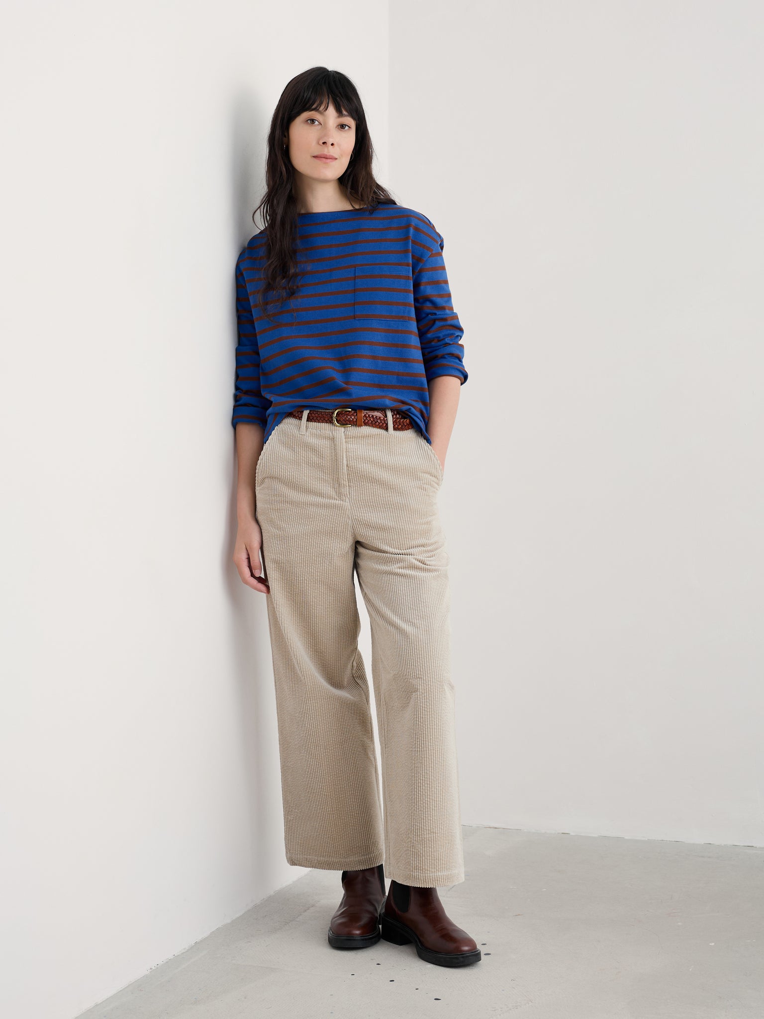 A perfect all-rounder with long sleeves and an elegant boat neck, crafted with a breathable organic cotton and yarn-dyed stripes for lasting colour. The dropped shoulders enhance the easy fit, finished with a patch pocket on the chest. We love this top paired with cord trousers or your favourite jeans. 100% Cotton (organic)