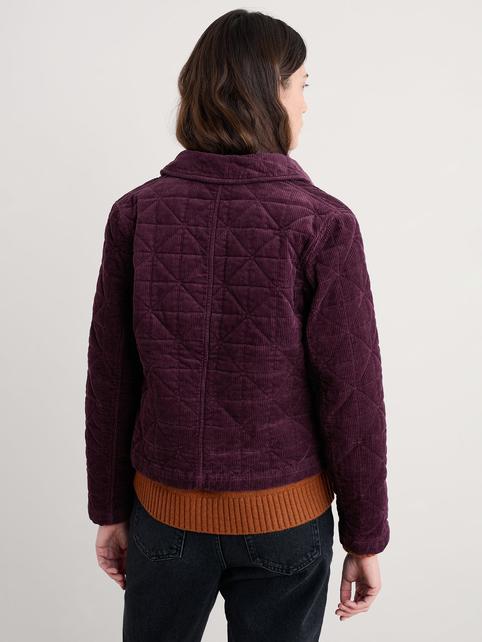 A staple cord jacket in pure organic cotton, perfect for layering over T-shirts on bright days or jumpers for chilly beach walks. Our Incoming Tide Jacket is lightly quilted with a geometric pattern, finished with mock horn buttons and two patch pockets for practicality and detail. 100% Cotton (organic) Lining.100% Recycled Polyester. Wadding: 100% Recycled Polyester