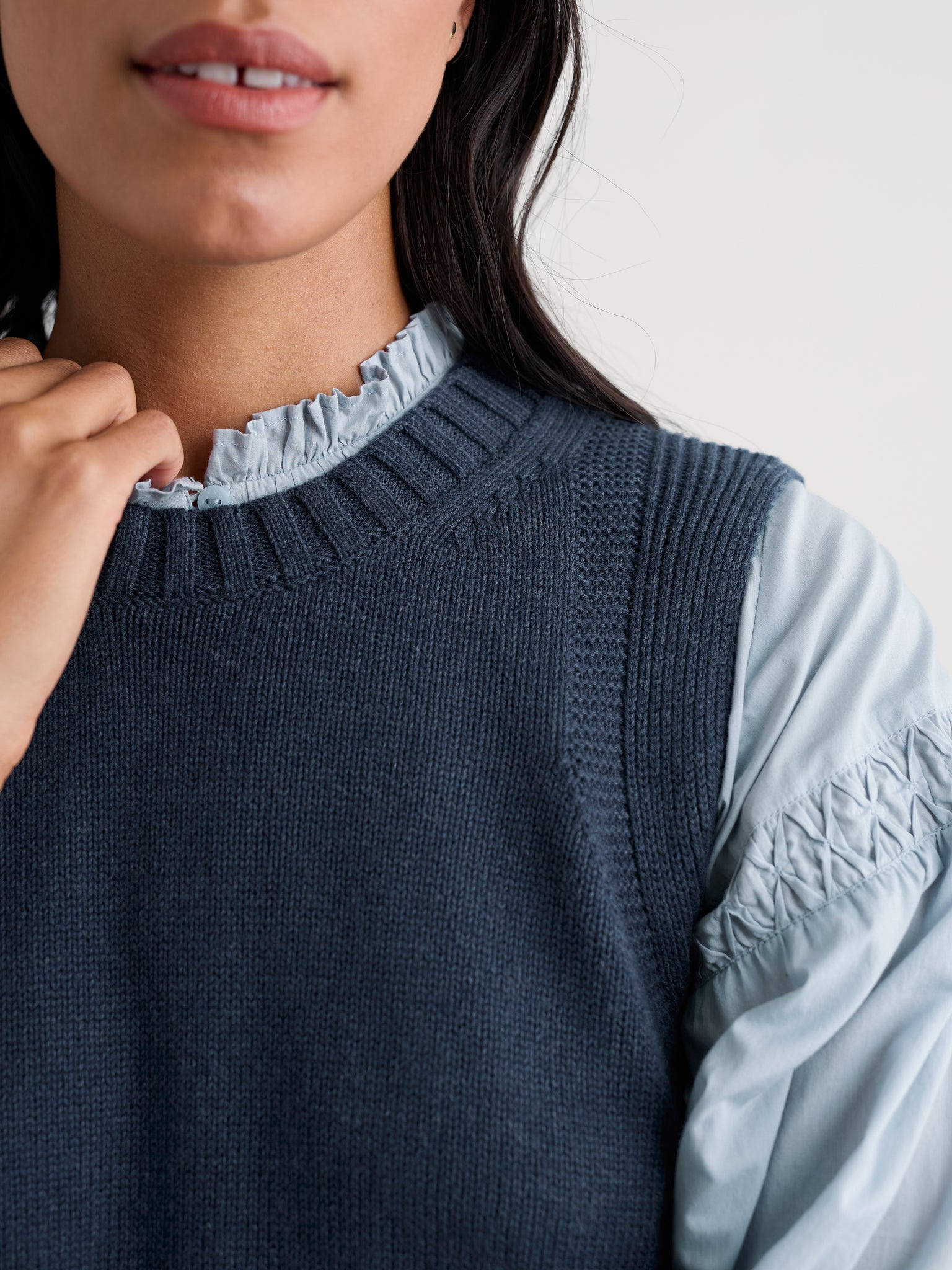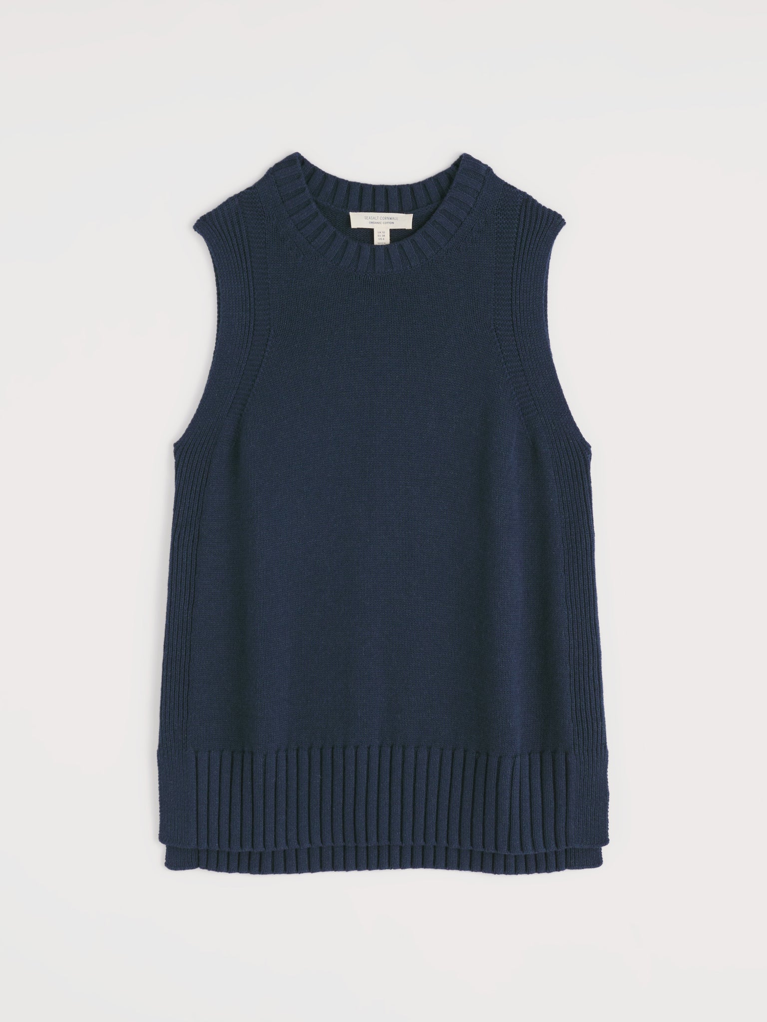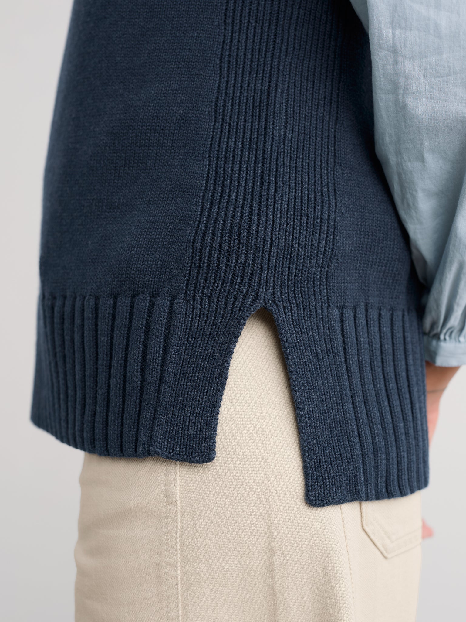 A functional layer through the seasons, made from soft and lightweight organic cotton with a five-gauge jersey stitch. A comfortable easy fit, complete with deep armholes and ribbed details along the crew neck and hem. 100% Organic Cotton