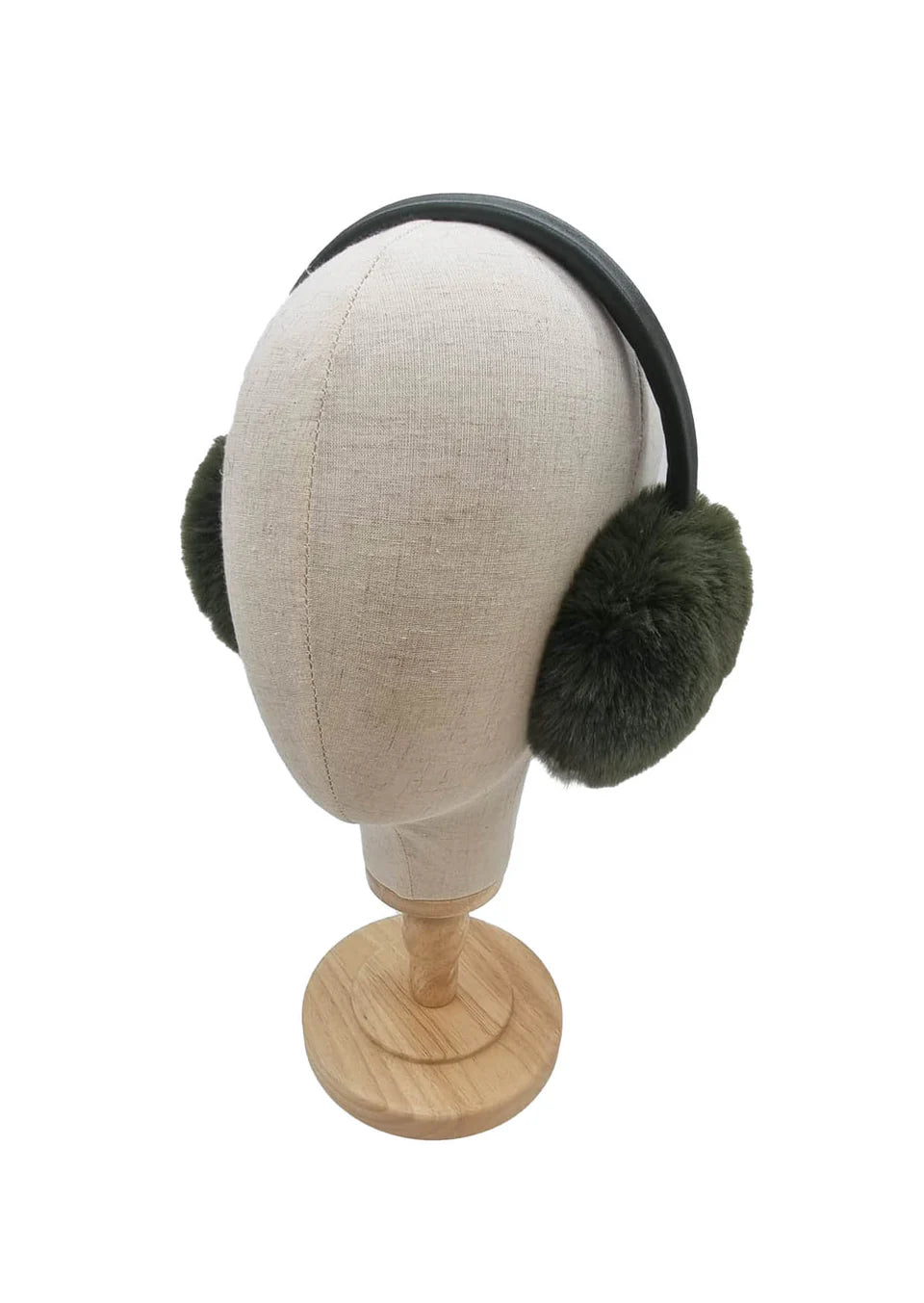 The Nooki Estella Earmuffs in Olive are a cosy winter essential, combining super soft faux fur with a chic leather headband for stylish warmth. Adjustable fit. 100% Polyester with 100% Leather trim