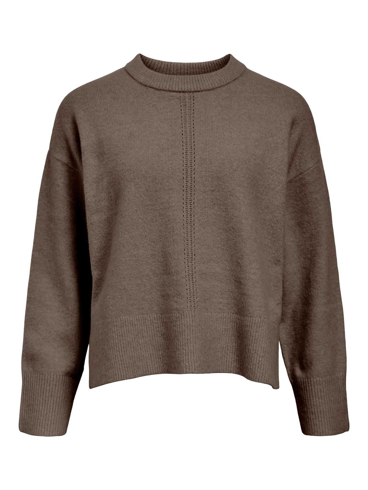 This lovely soft and cosy mid weight everyday knit will prove to be a valuable staple for your wardrobe. With a loose fit, crewneck, deep rib hem and cuff with stepped front to back hemline with side split. An extra design detail is the vertical pointelle stitch running down the centre front of the sweater. 91% Recycled Polyester, 6% Wool, 3% Elastane