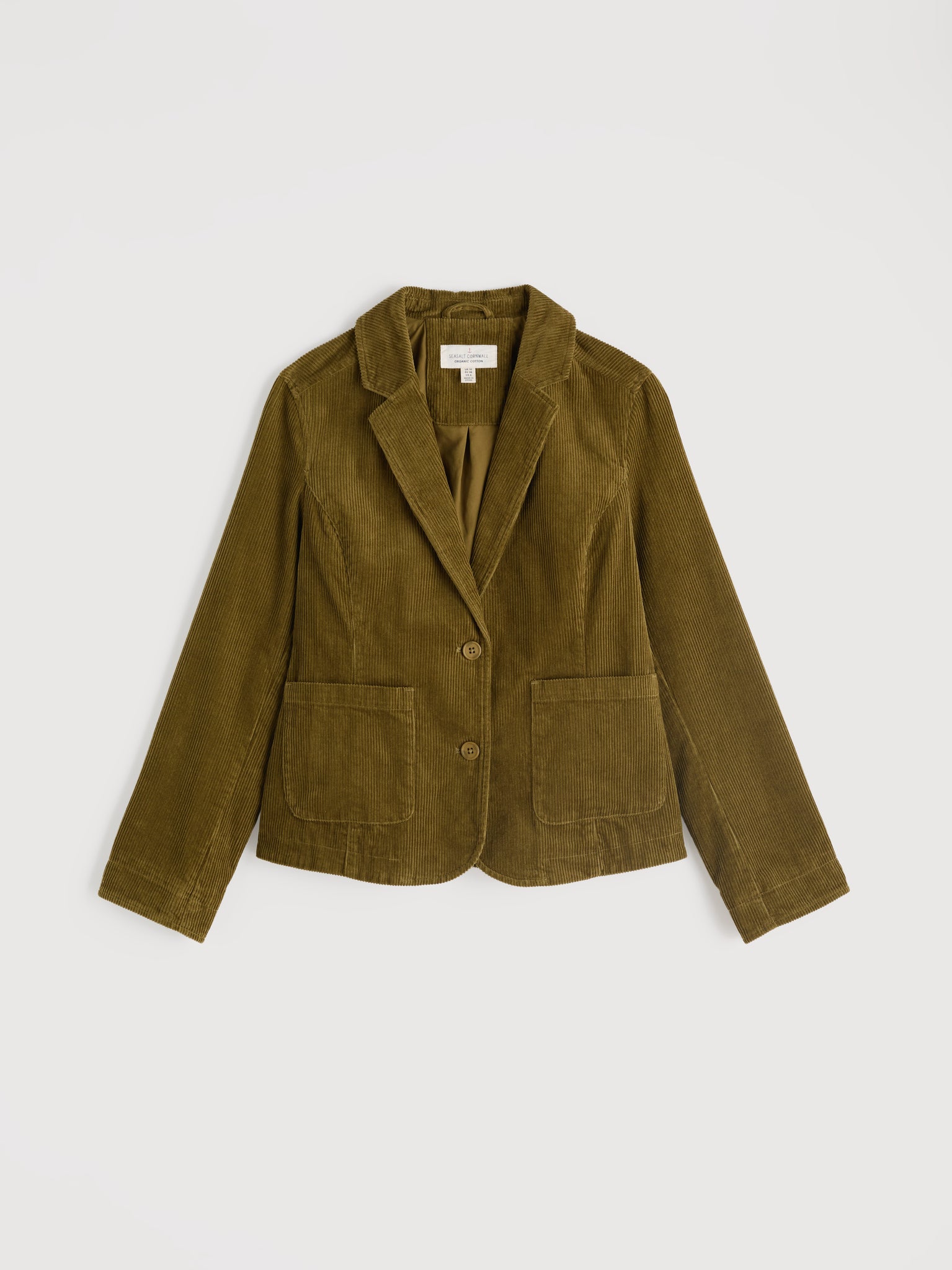 Seasalt's fitted Heald Blazer is crafted from 100% organic cotton, and cut to a stylish short length. With flattering princess seams, a button front and patch pockets, it's a versatile piece that looks just as good at the office as it does at an autumnal event. We especially love it when paired with the matching Dillwyn Cord Trouser as a casual and contemporary suit and a favourite shirt or t-shirt. 100% Cotton (Organic)